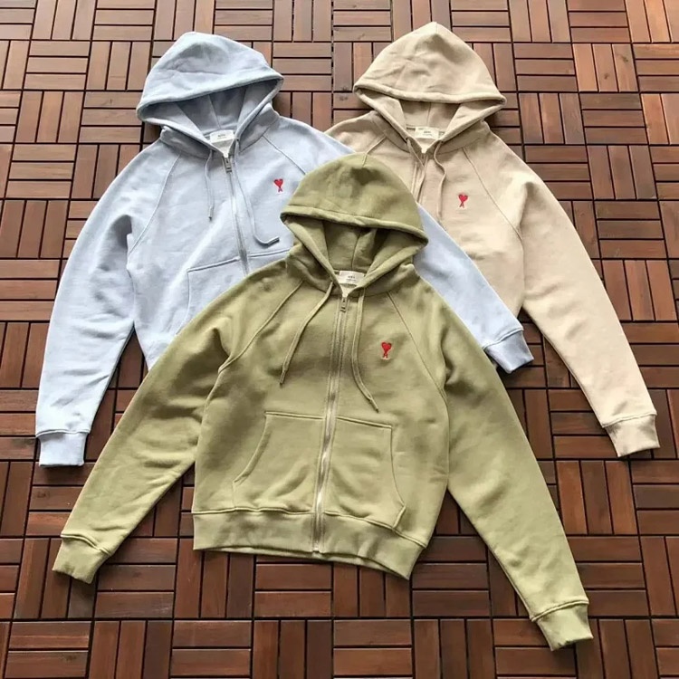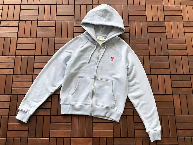 AMIPARIS De Coeur Heart Pattern Hooded Zip-Up Sweatshirt-5153