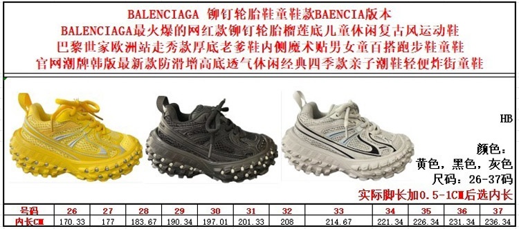 Balenciaga mesh lace-up low-top rivet tire-soled children's shoes-4162