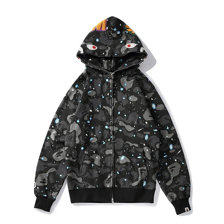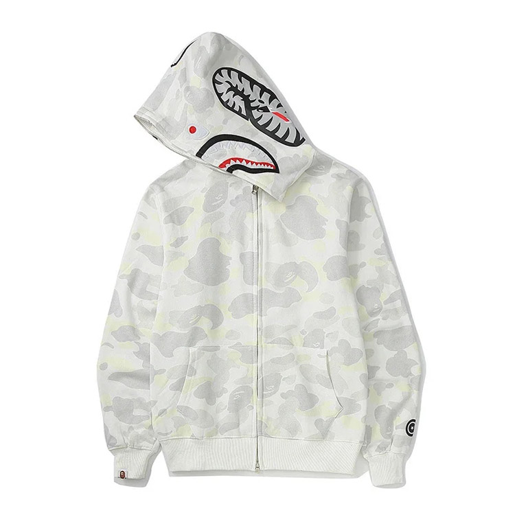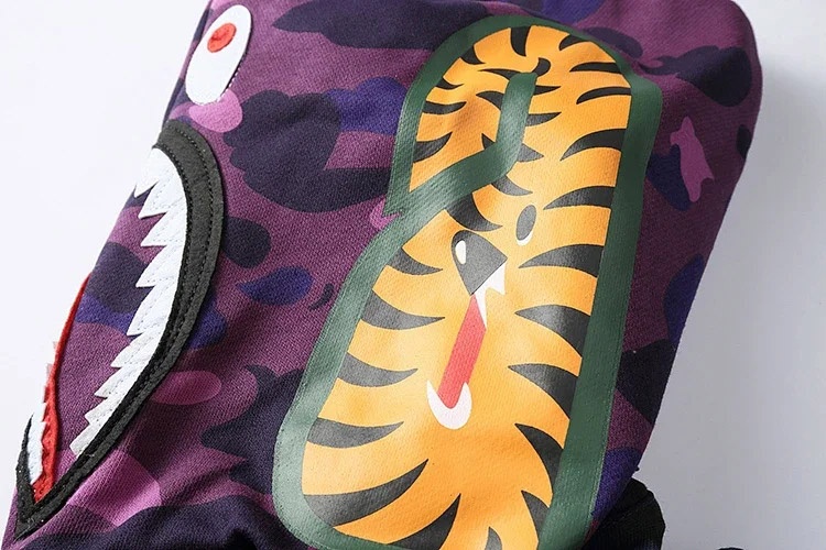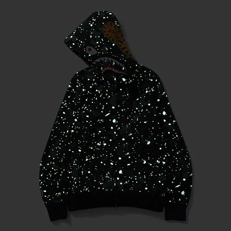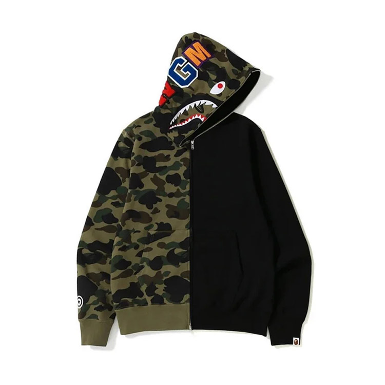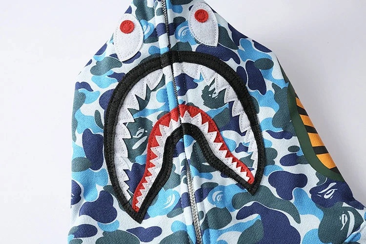 BAPE colorblock fluorescent shark series hooded sweatshirt jacket-4243