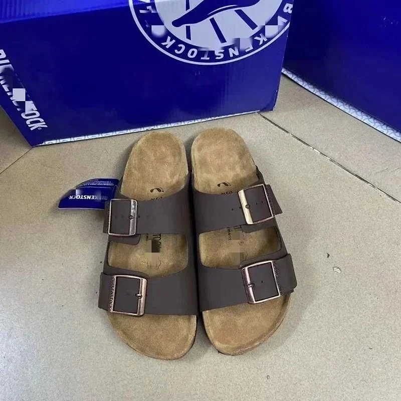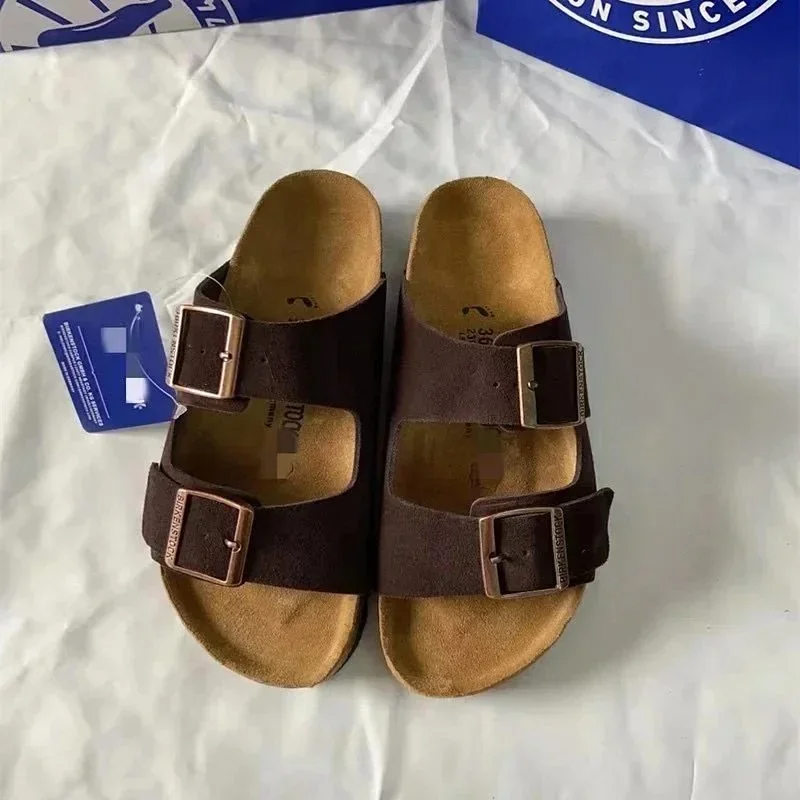 BIRKENSTOCK Lazy men's and women's double buckle flat slippers genuine leather cork footbed comfortable outdoor sandals-2342