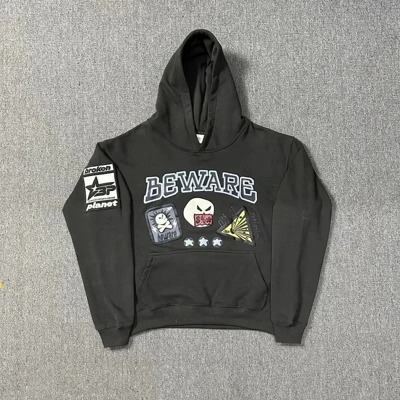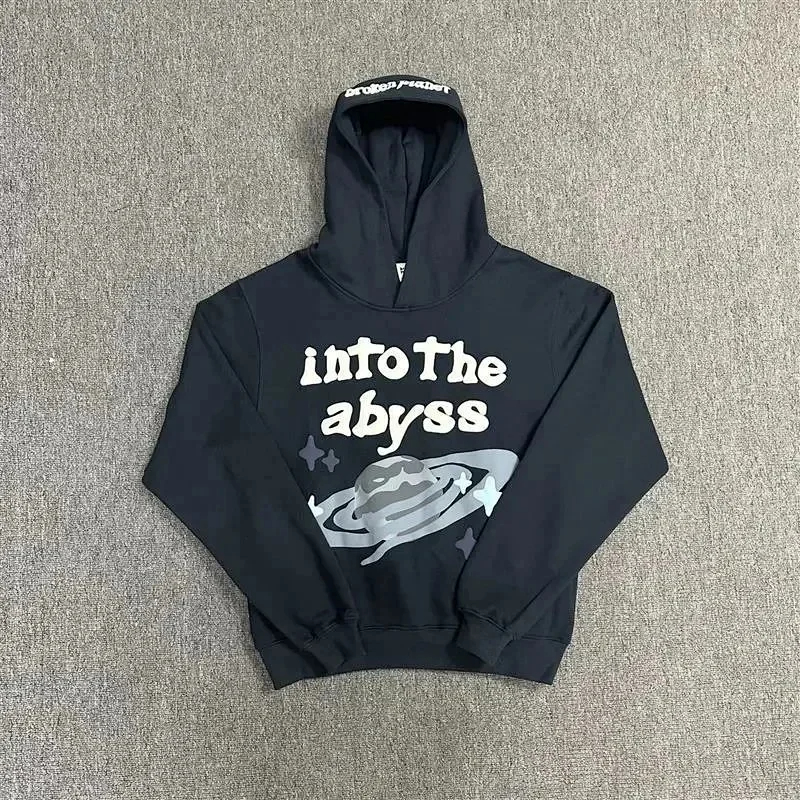 Broken Planet American style retro foam printing hooded sweatshirt-2506