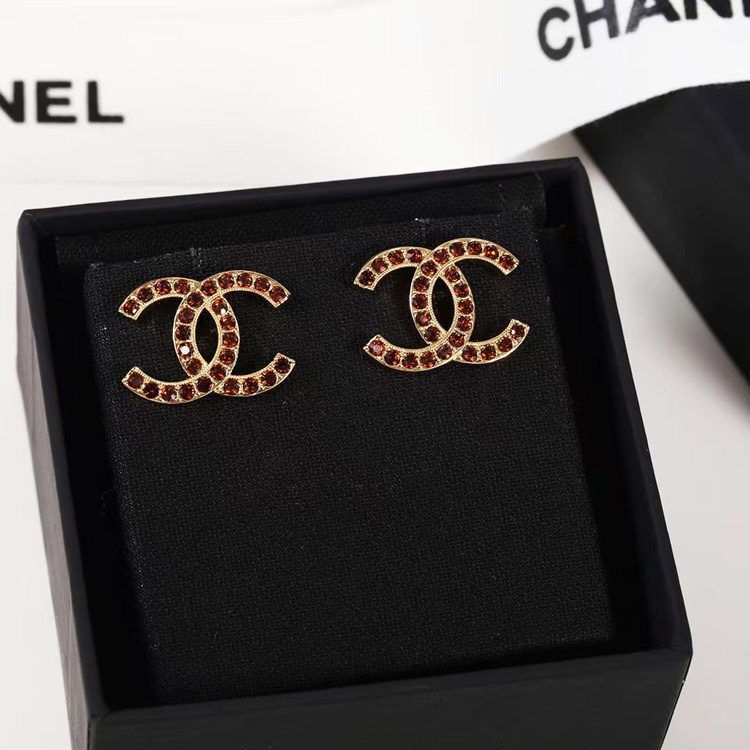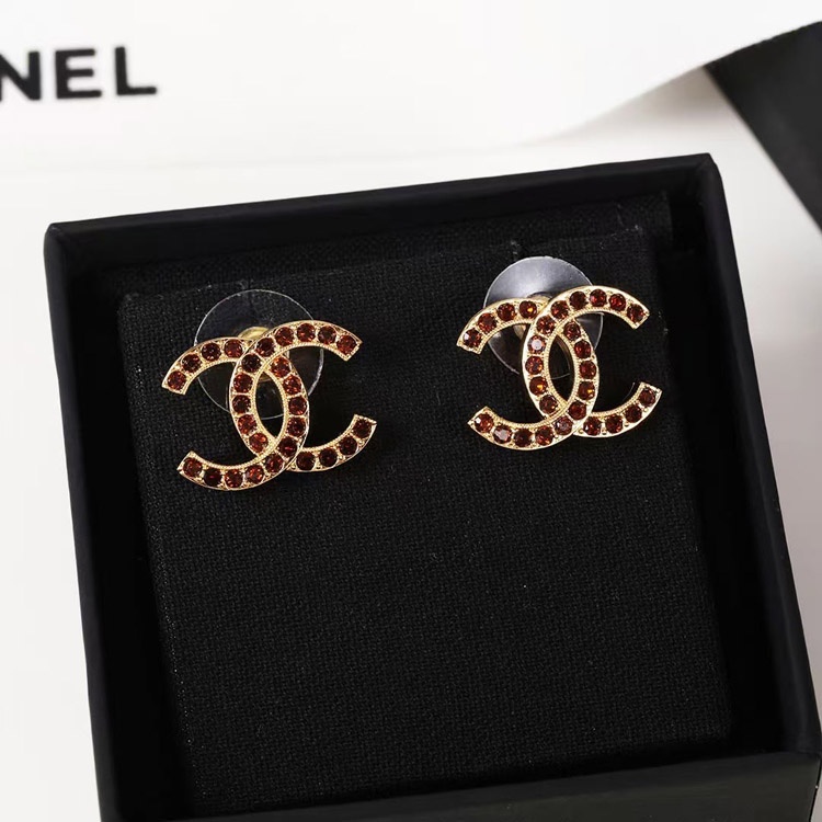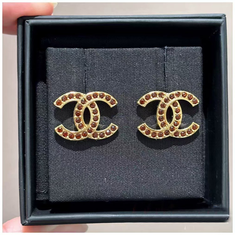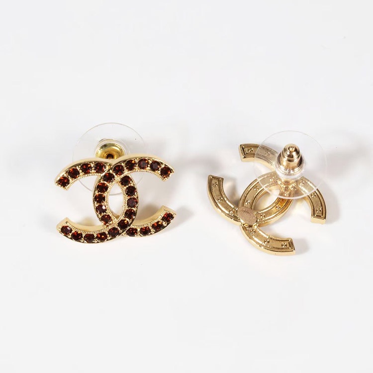 Chanel amber double c rhinestone vintage gold earrings-3742