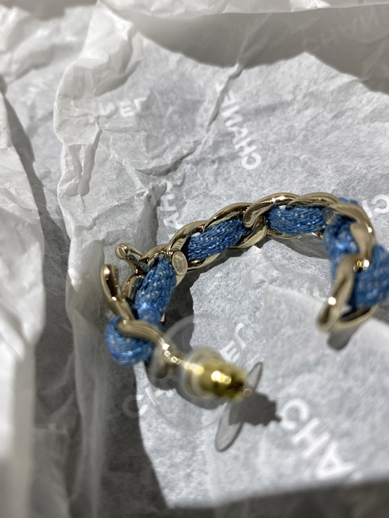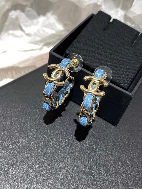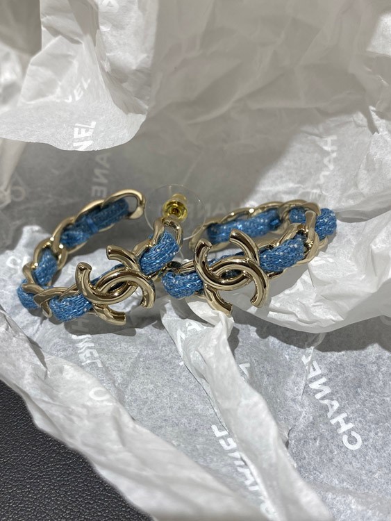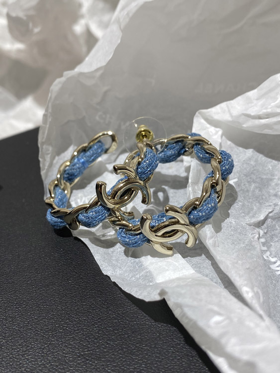 Home > Chanel Light Gold Denim Blue Hoop Earrings-3595