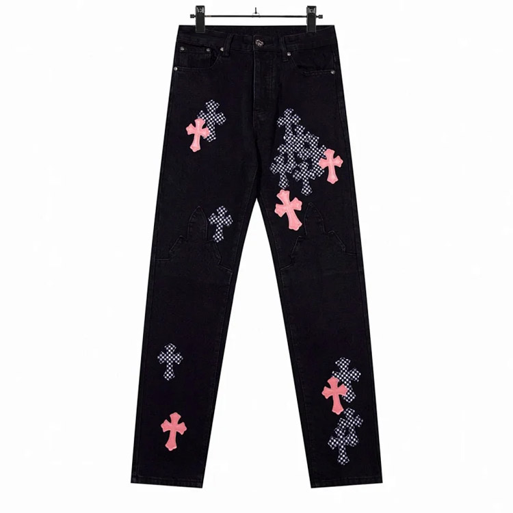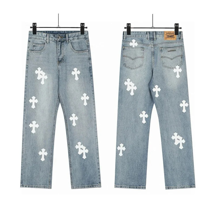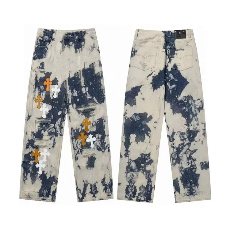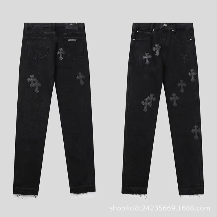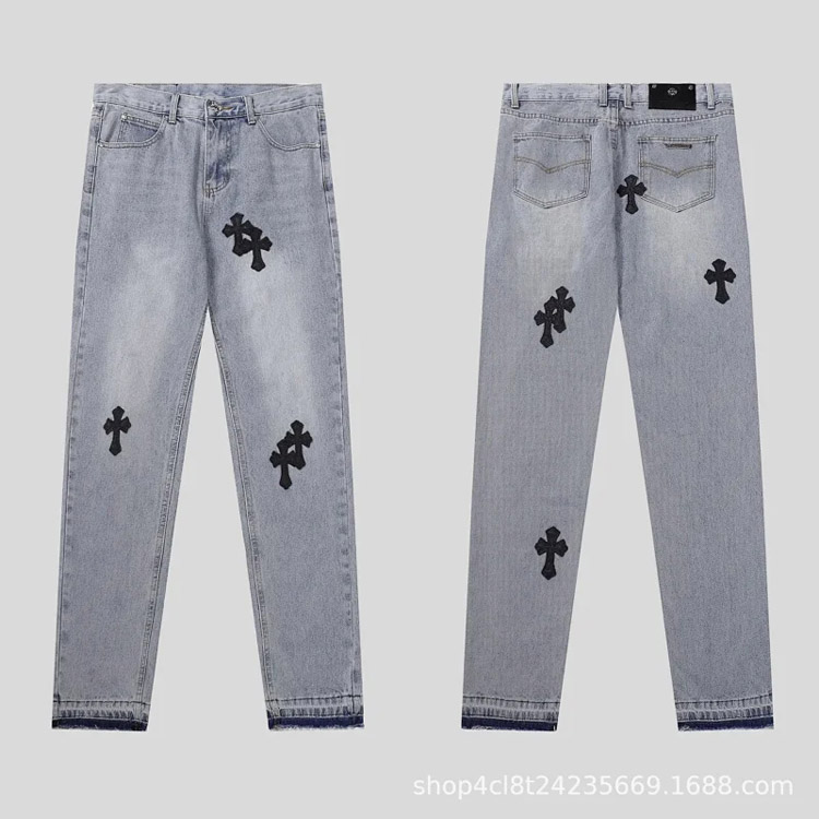 Chrome Hearts CH Appliqué Embroidered Washed Loose-fitting Jeans-4939
