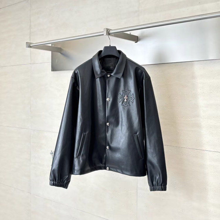 Home > Chrome Hearts CH New Style Leather Jacket with Large Embroidered Arms-5009