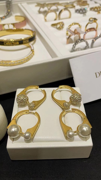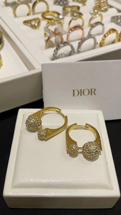 Dior French full diamond small golden ball gold earrings-3711