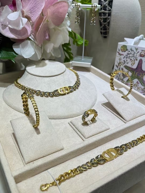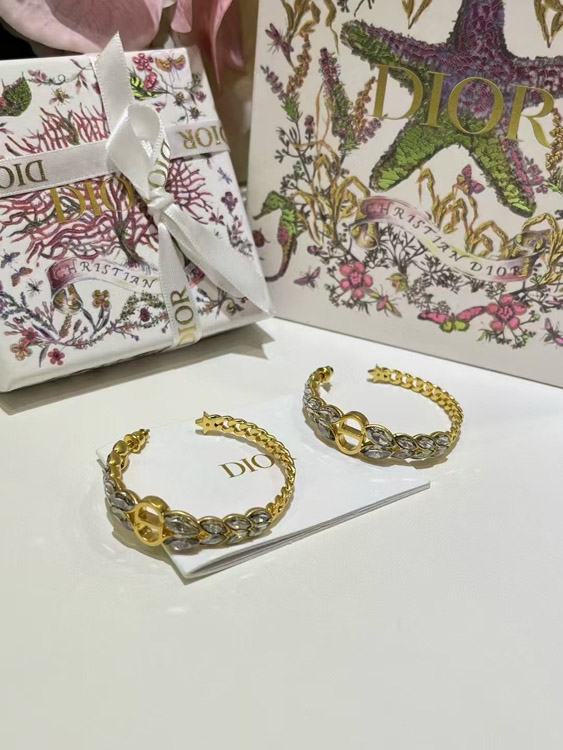 Dior Gold Horse Eye Crystal Wheat Ear Chain Hoop Earrings-3703