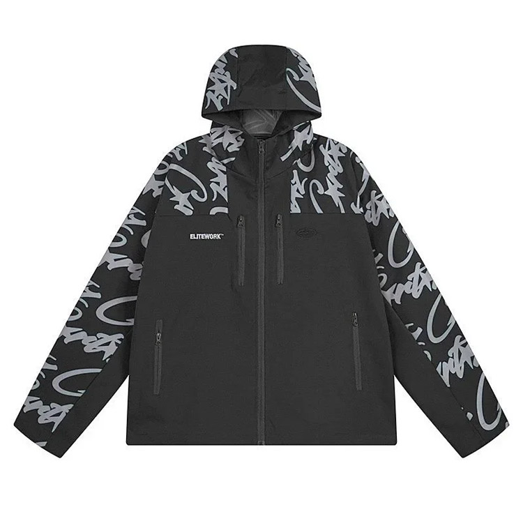 Elitework graffiti zip-up multi-pocket hooded jacket-4385