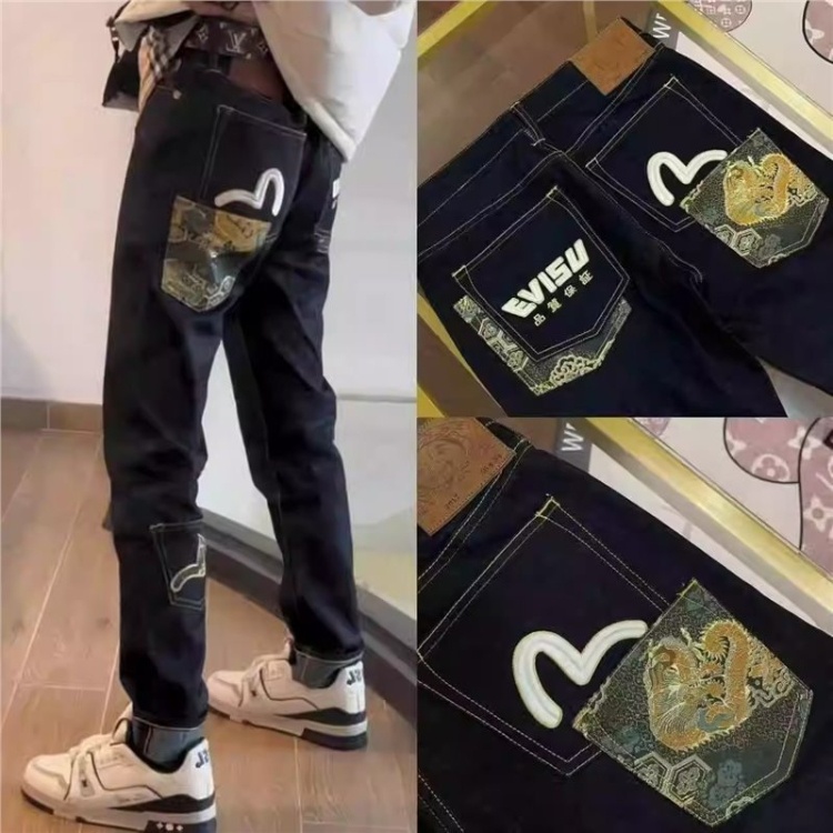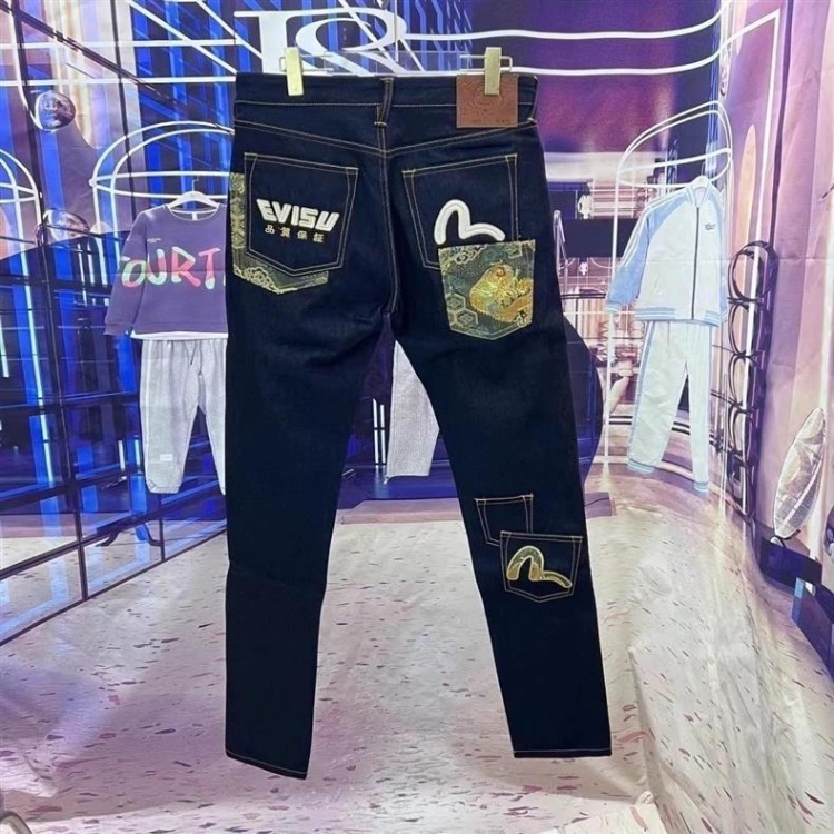 EVISU new embroidered and printed washed denim jeans-5866