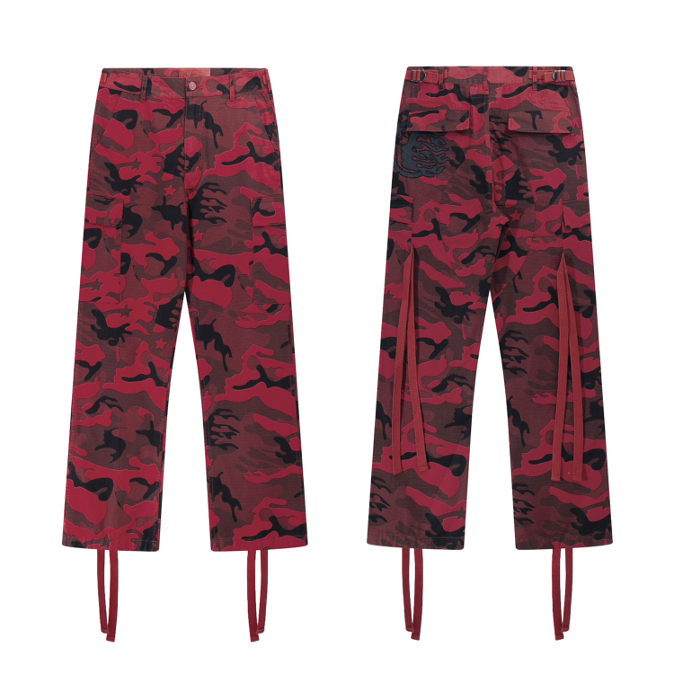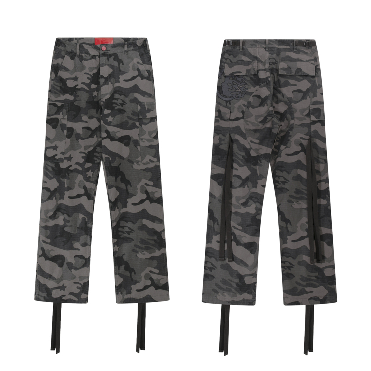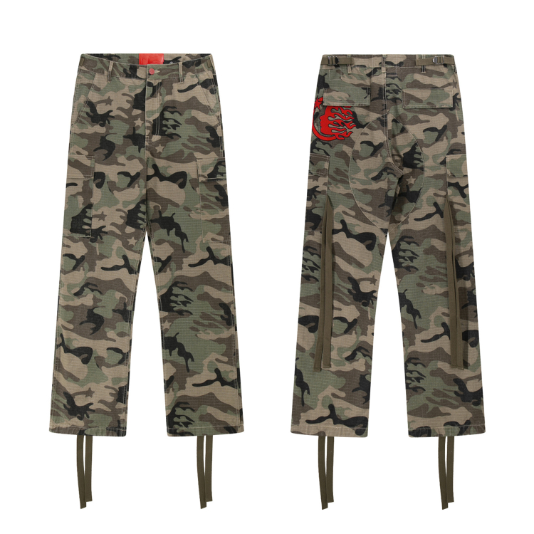 Hellstar new embroidered ribbon straight-leg camouflage work pants-5280