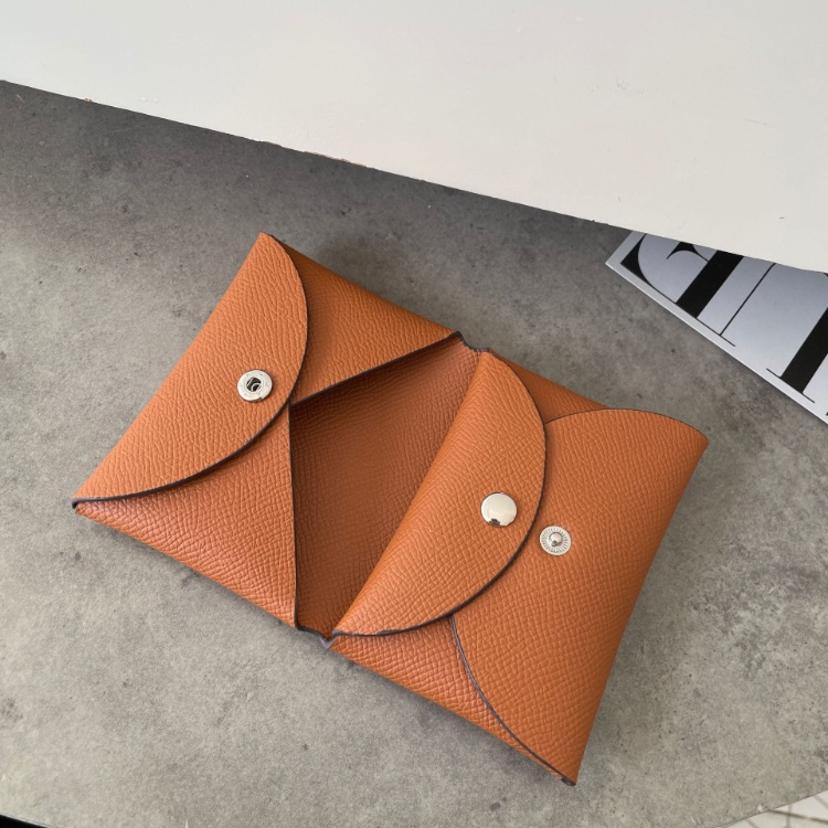 Hermès bi-fold card holder with palm print and snap closure-5777
