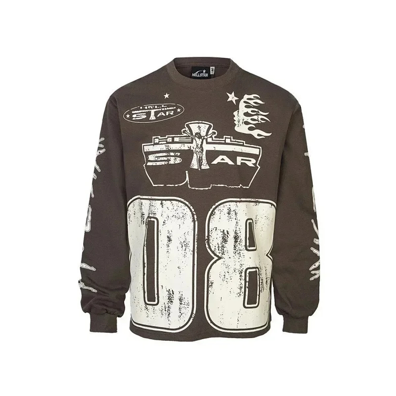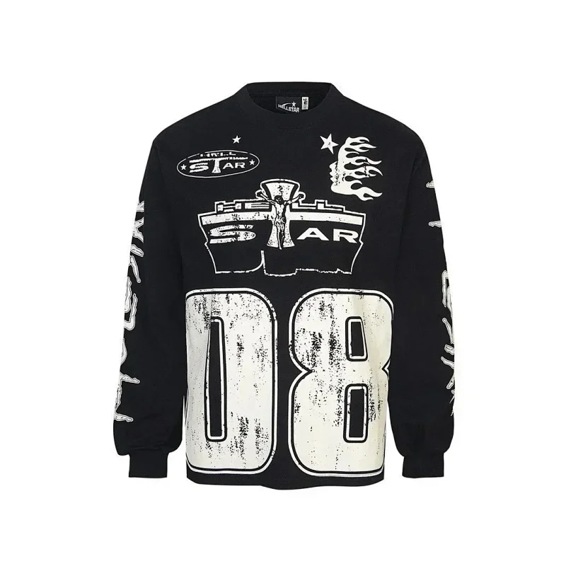 Ins same style Hell Star Retro Print Men's and Women's Loose Casual Long Sleeve T-shirt-2514