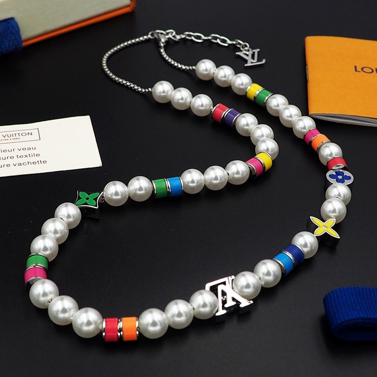Louis Vuitton LV adjustable chain beaded floral letter necklace-4022