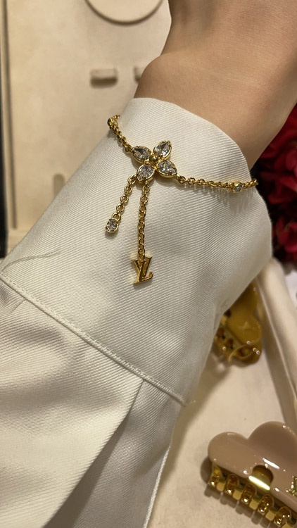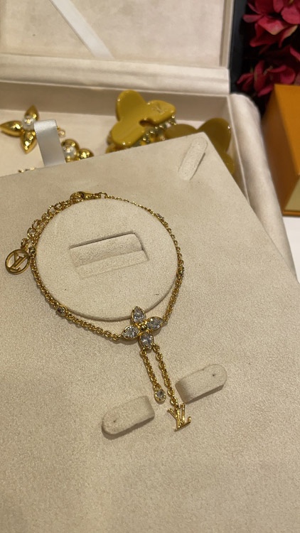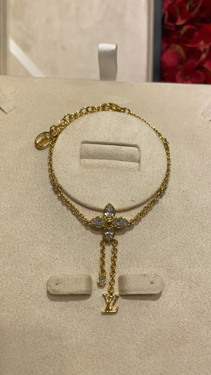 Louis Vuitton LV full diamond floral small chain tassel gold bracelet-3729