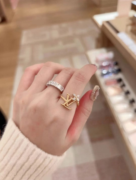 Louis Vuitton LV gold letter diamond small flower ring-3722