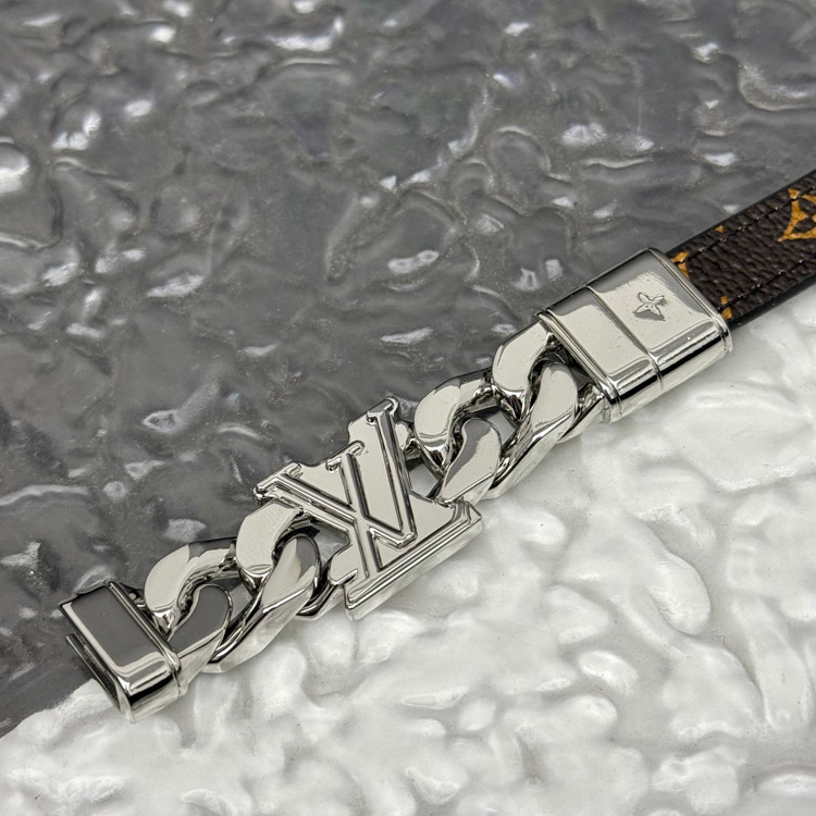 Home > Louis Vuitton LV leather metal chain ring with engraved letters on both sides of the bracelet-3870