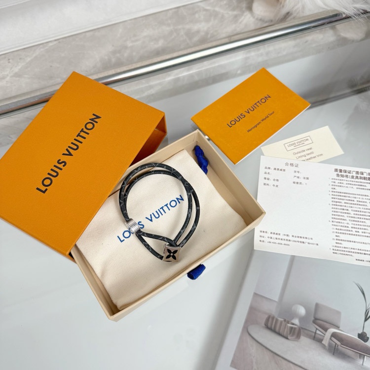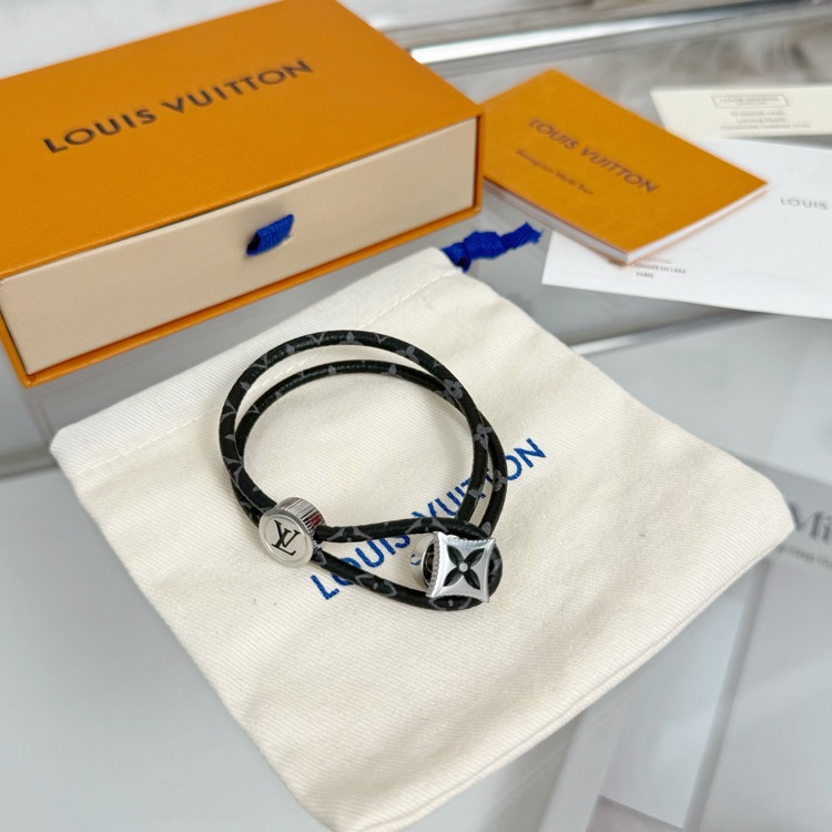 Louis Vuitton LV Letter Floral Black Flower Leather Buckle Bracelet-3640