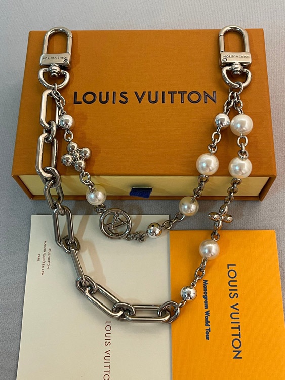 Louis Vuitton LV Letter Flower Pearl Double Chain Bag Belt Chain-3868
