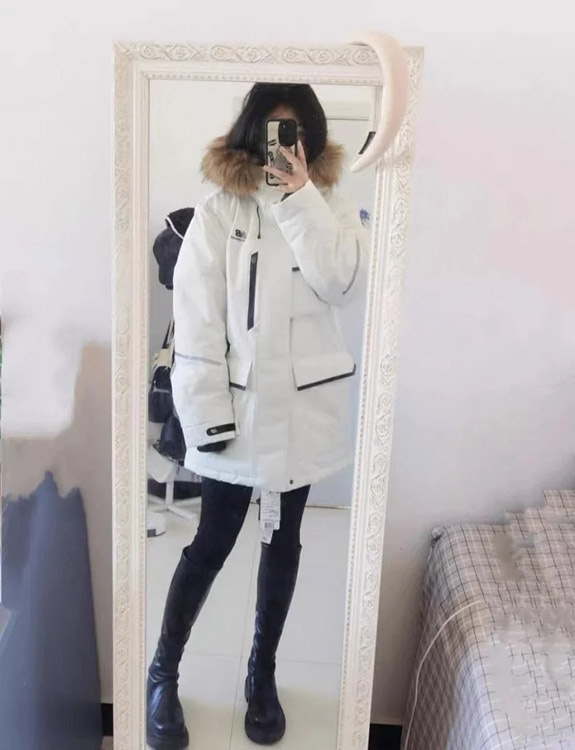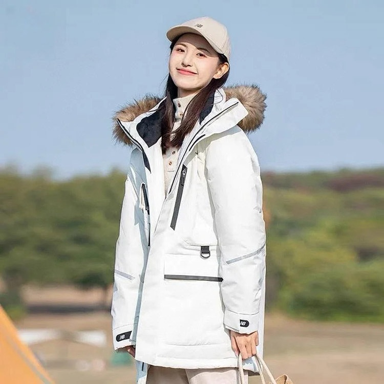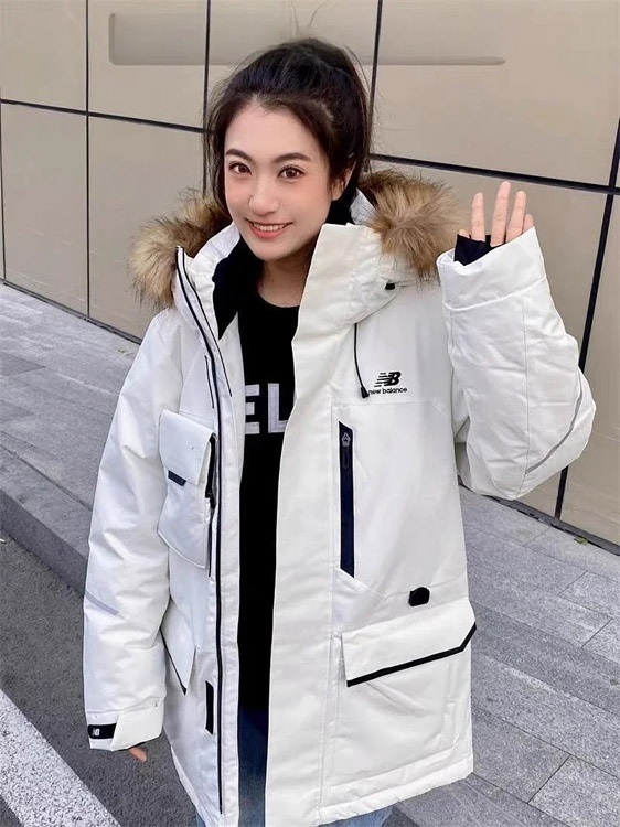 Home > New Balance Embroidered Sports Zipper Hooded Mid-Length Workwear Down Jacket-4264