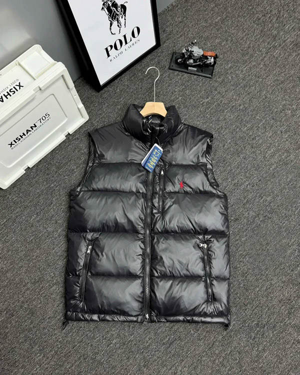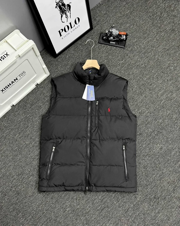 Polo Ralph Lauren Logo Embroidered Zipper Stand Collar Down Vest-4273
