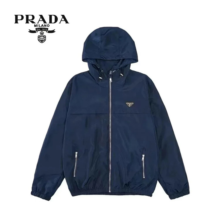PRADA Prada Re-Nylon SS22 Logo solid color hooded waist jacket-4321
