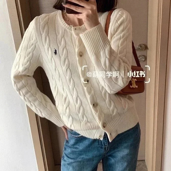Ralph Lauren High-end original embroidered cable-knit cardigan sweater for women-2533