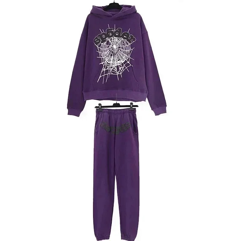 Sp5der Celebrity-style spider web foam hooded casual suit-2273