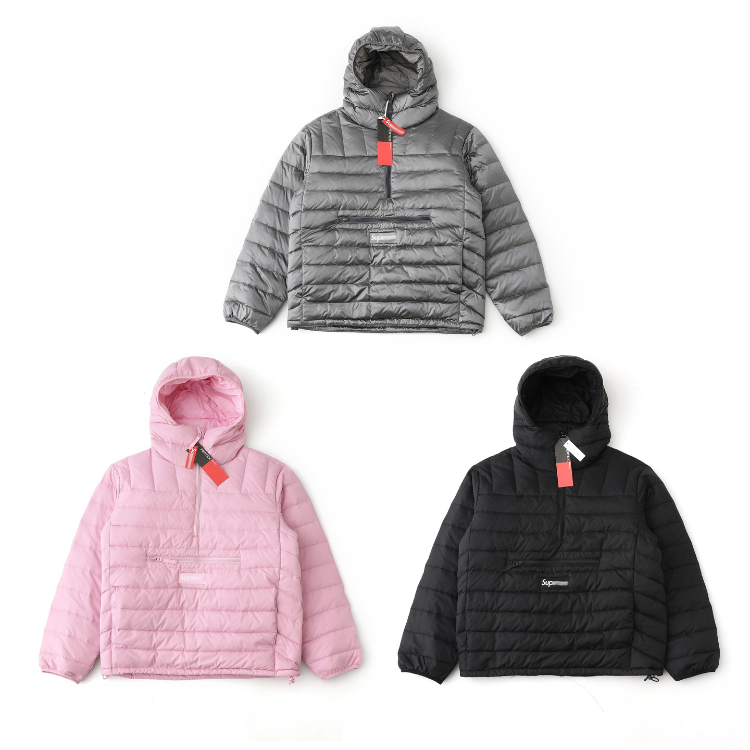 Supreme woven logo label half-zip ribbed down jacket-5903