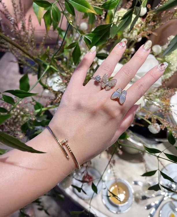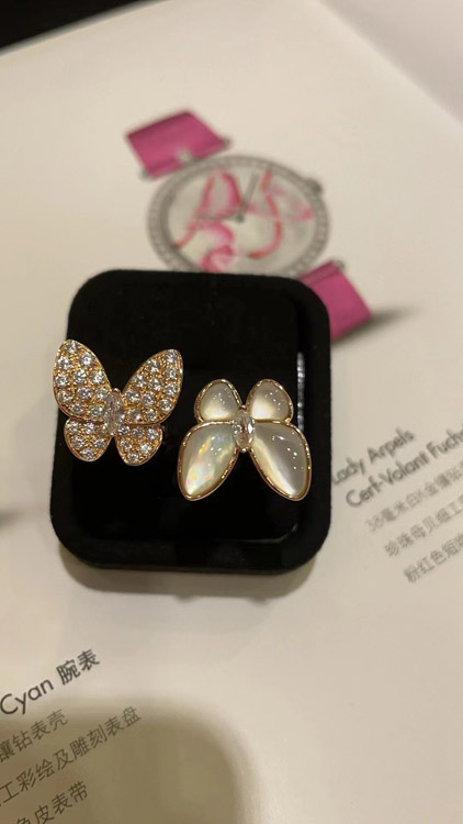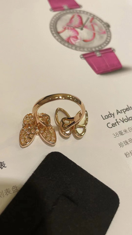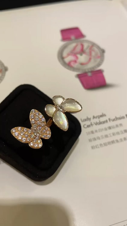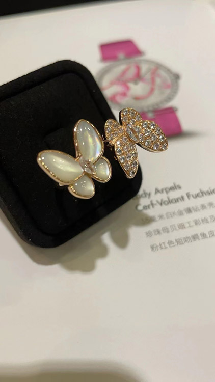 Van Cleef & Arpels White Mother-of-Pearl Diamond Butterfly Rose Gold Ring-3734