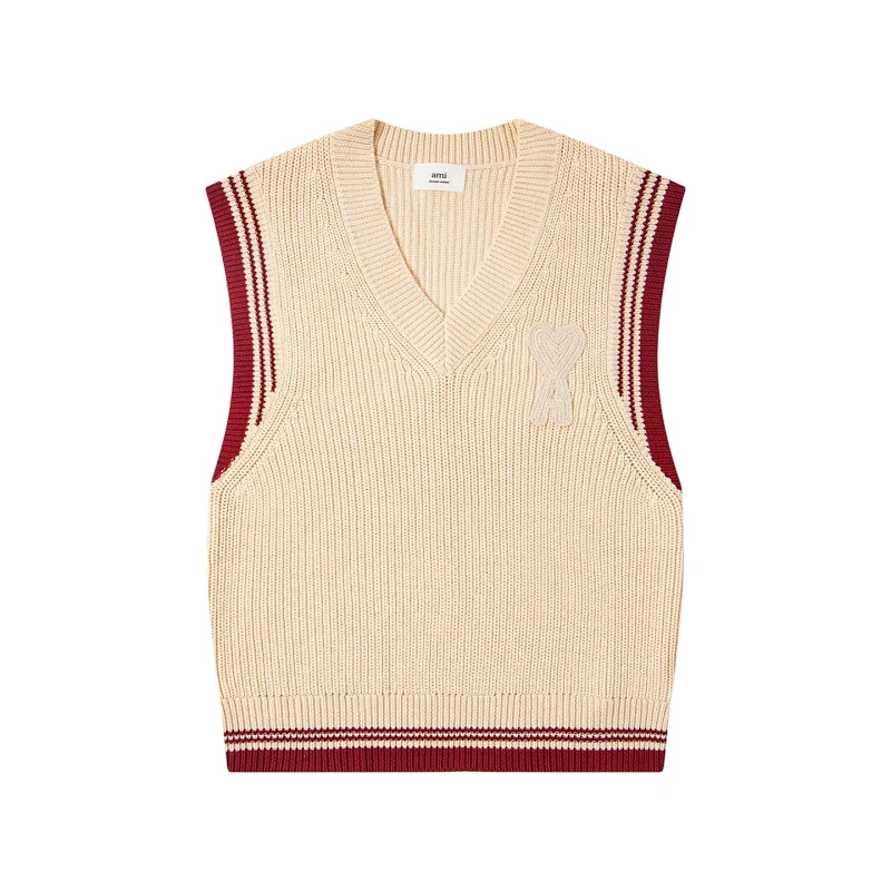 AMIPARIS Knitted Striped V-Neck Drop-Shoulder Wool Sweater-5156