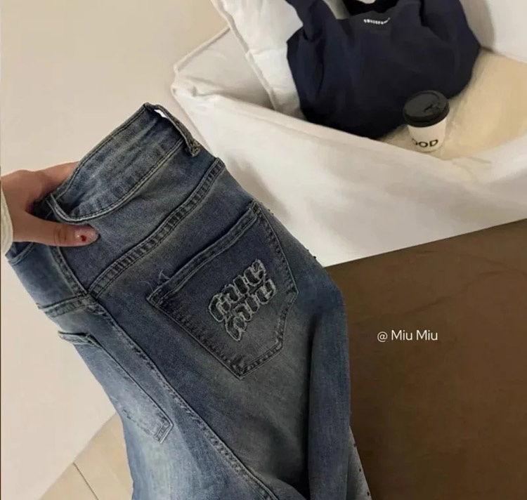 Miu Miu's new starry sky heavy rhinestone straight leg jeans-4929