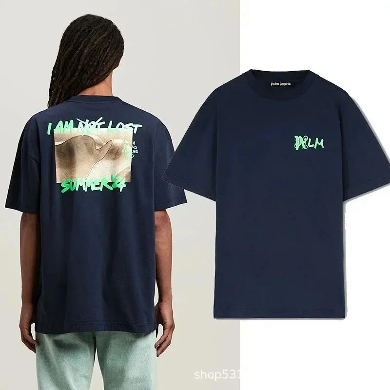 Palm Angels Summer new letter pure cotton couple loose short-sleeved T-shirt-1912